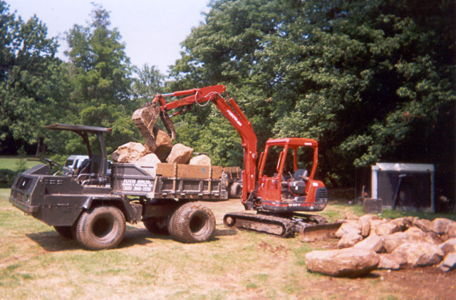 Kubota mini excavator with rubber tracks can fit in the tightest of spots without damaging lawns or greens.